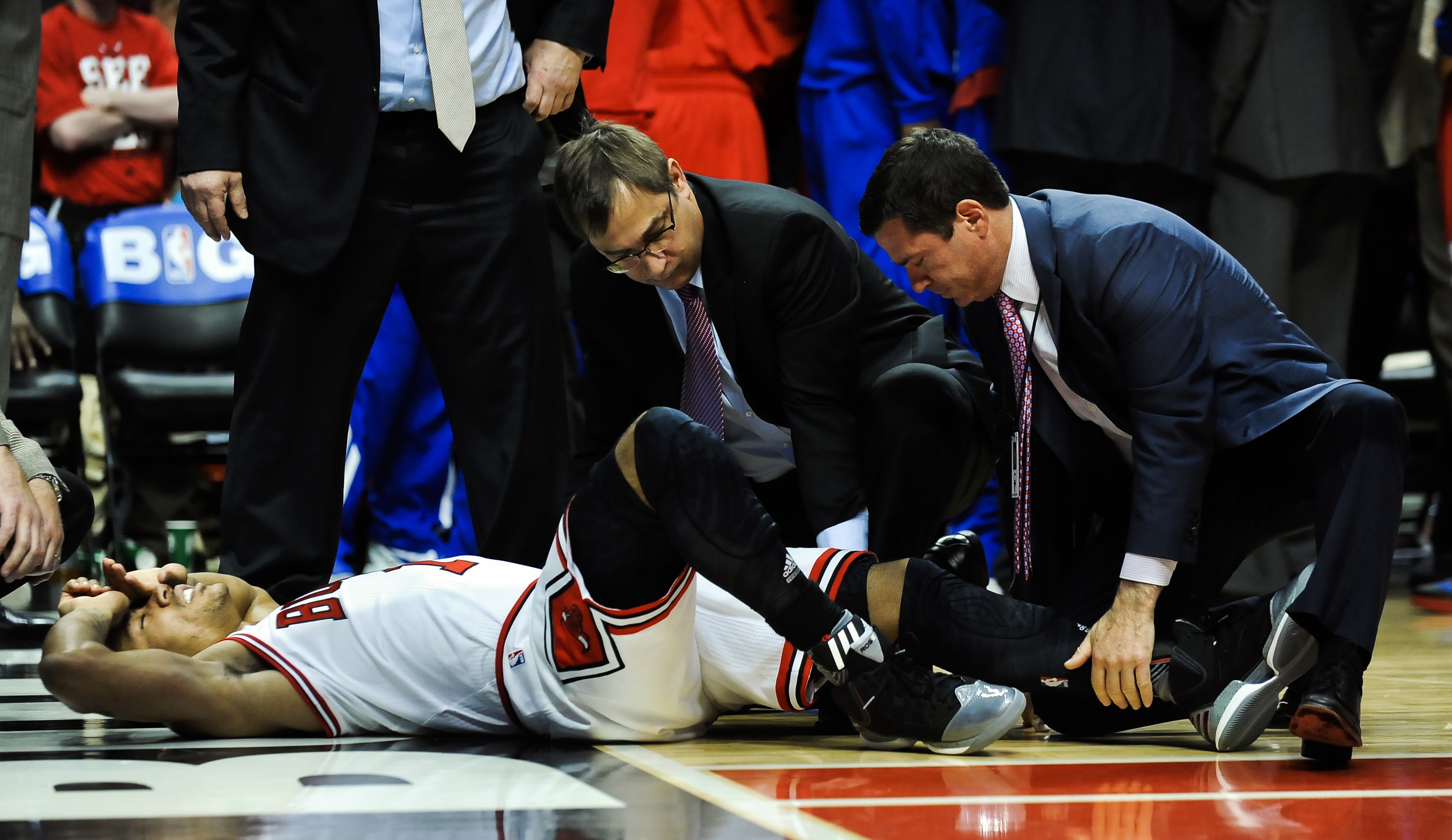 2012年季后赛首轮G1,公牛对阵76人,德里克·罗斯在比赛最后时刻突破时受伤,在跳起后落地时遭遇了左膝十字韧带撕裂,罗斯也因此赛季报销并缺席了之后的2012-13赛季。