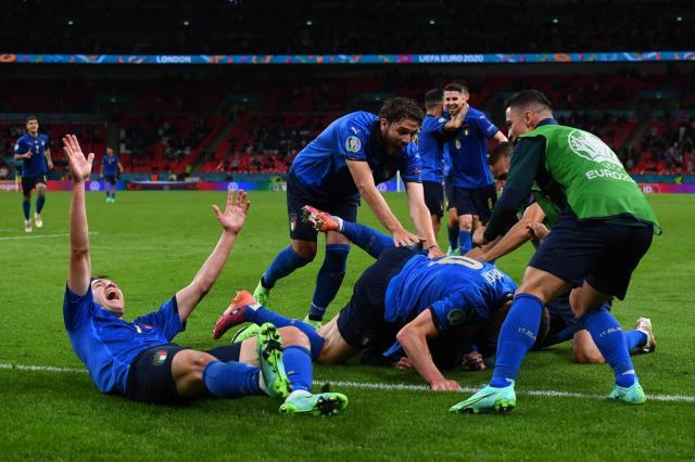 意大利距离崩盘只差一点点,明知道奥地利人的武器只有边路传中一条,但就是顶不住,1.80米的阿拉巴力压迪洛伦佐就是最好的例子。侥幸前国米球员阿瑙托维奇的头球被吹了越位。意大利的后卫还是得顶出来,虽然年事已高,但队长基耶利尼的缺席仍然是个损失。阿切尔比和迪洛伦佐的优势在于体力,两人都属于跑不死级别。所以我们看到阿切尔比即使躺在地上,仍将球拨给了插上的佩西纳,迪洛伦佐在加时的最后时刻,还能冲刺60米后攻门。
